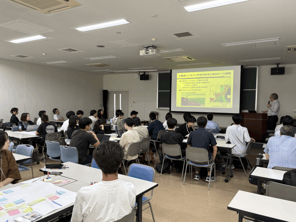 2025年9月8日~12日に秋田県内で開催された「洋上風力発電秋田学生ワークショップ2025」において、本事業の研究開発項目である「ステークホルダーとの合意形成を目的とした対話、情報発信」の一環として、東京大学の鈴木名誉教授が「海洋再生可能エネルギーと日本における洋上風力の開発」、丸紅洋上風力開発株式会社の志賀が「浮体式洋上風力発電事業と漁業共生について」それぞれ講演を行いました。